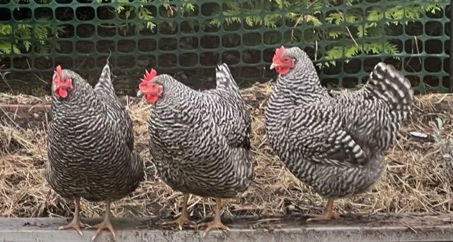 Barred Rock ladies: Spatch, Ovey and Mathilde. Photo: David Kibbe